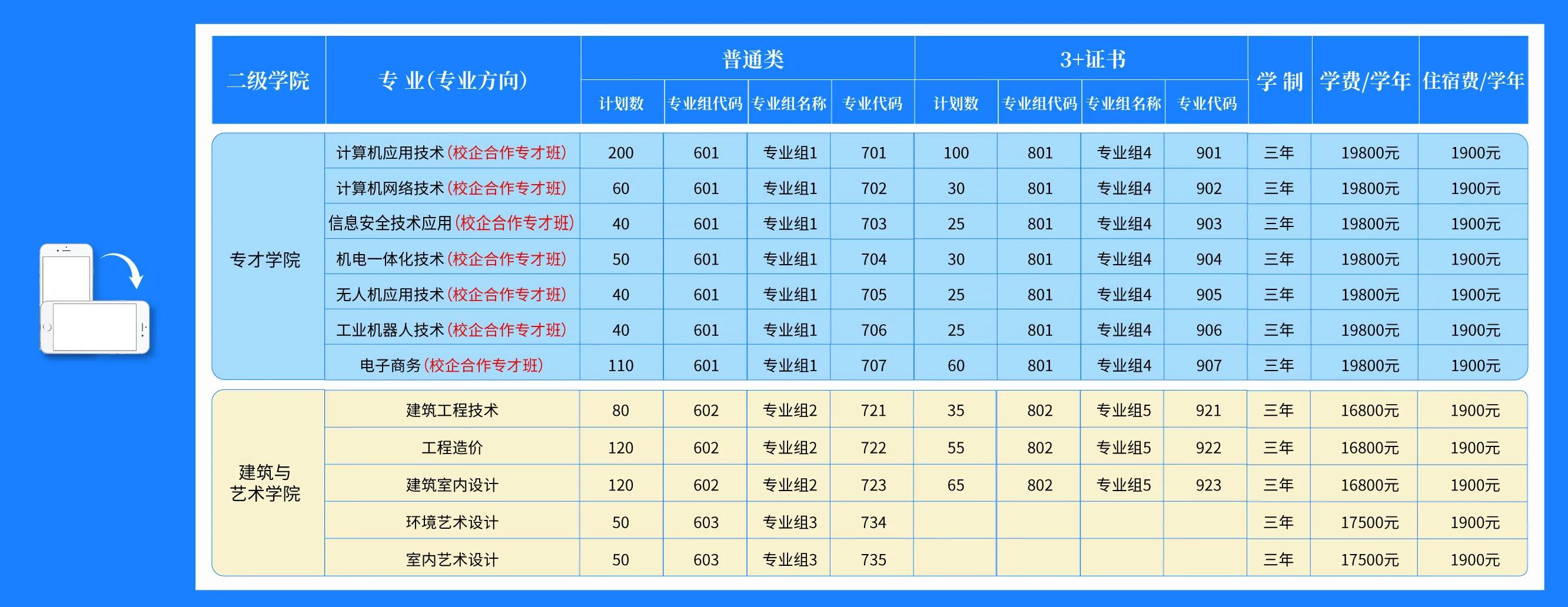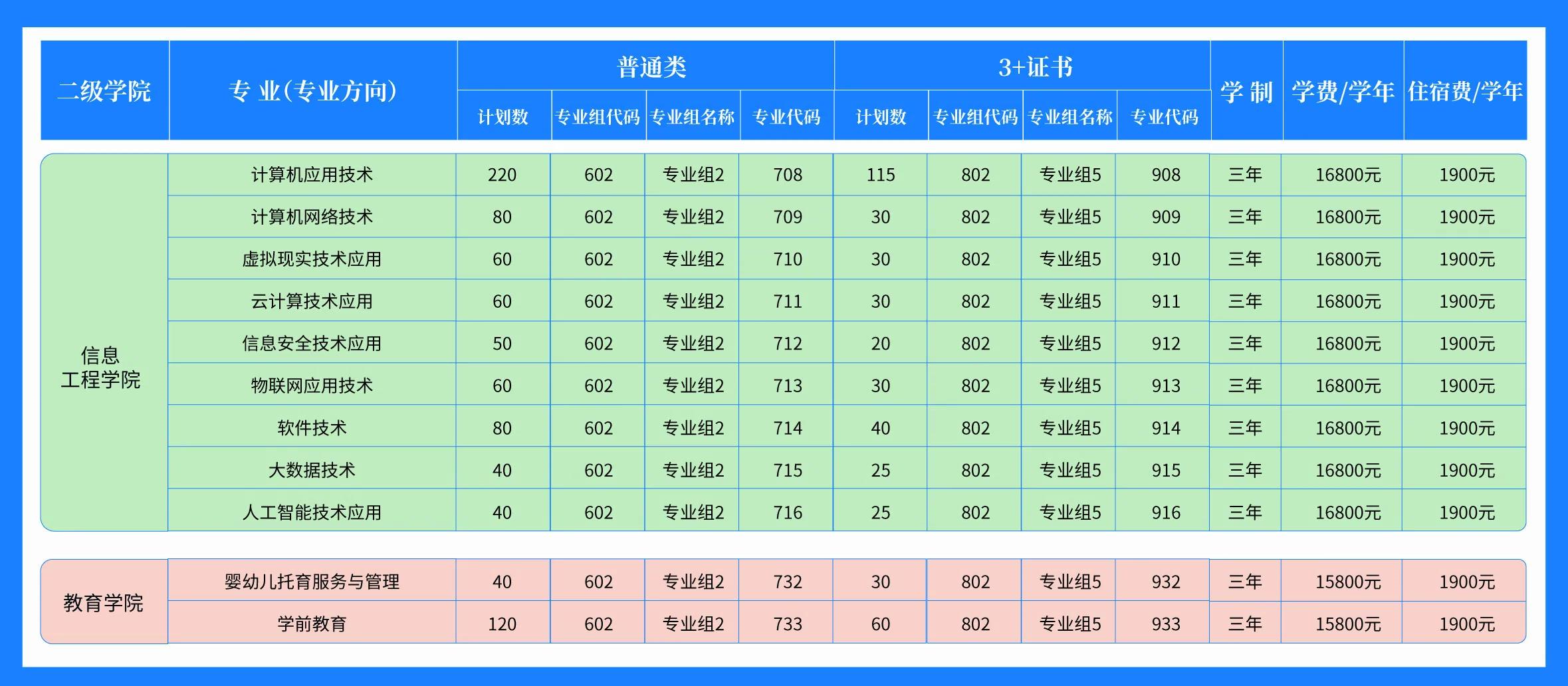 2022年春季高考招生专业计划及代码